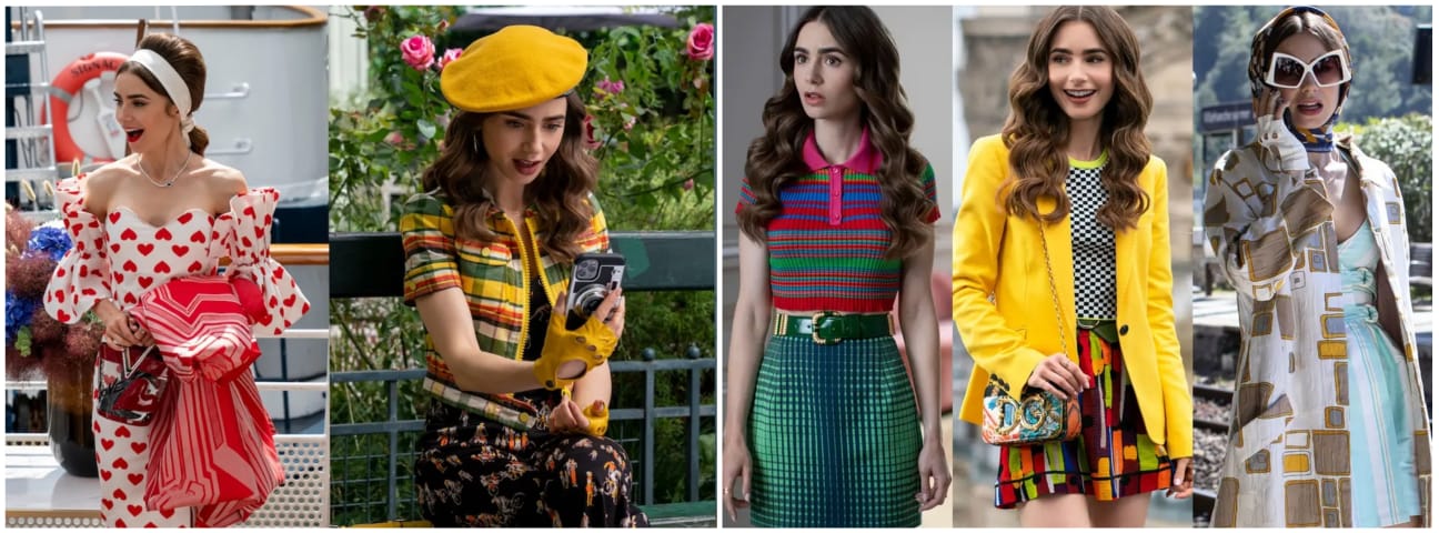 Ketimpangan ini kian mencolok saat kita membedah gaya berpakaiannya. Di tengah kerumunan warga lokal yang setia pada prinsip Parisian Chic yang cenderung praktis, low-key, dan didominasi palet warna bumi yang tenang, Emily justru hadir dengan estetika tabrak warna yang sangat berani. Pilihan outfit-nya yang serba ekstra itu diametral dengan pakem understated yang selama ini menjadi identitas mode di kota tersebut.